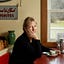 She works out of a converted barn, with a cozy studio upstairs and a full-scale 1950s diner on the ground floor—complete with red stools, a vintage Wurlitzer, a huge stuffed chicken in one booth and a hulking oscillating fan draped with a sign reading, “I’m a big fan.”