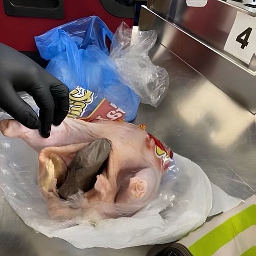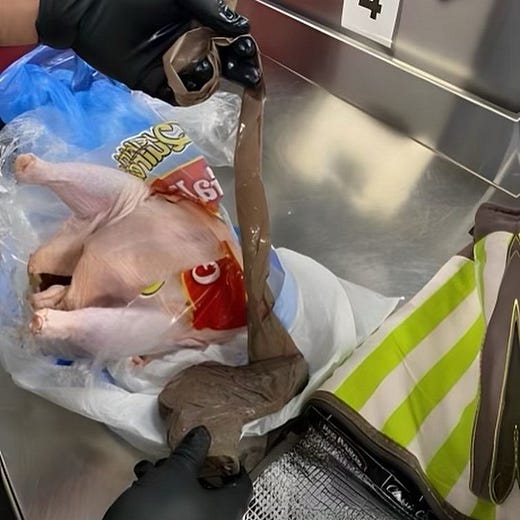TSA agents find gun smuggled inside raw chicken, then smuggle puns into social media post. (Fox5NY)